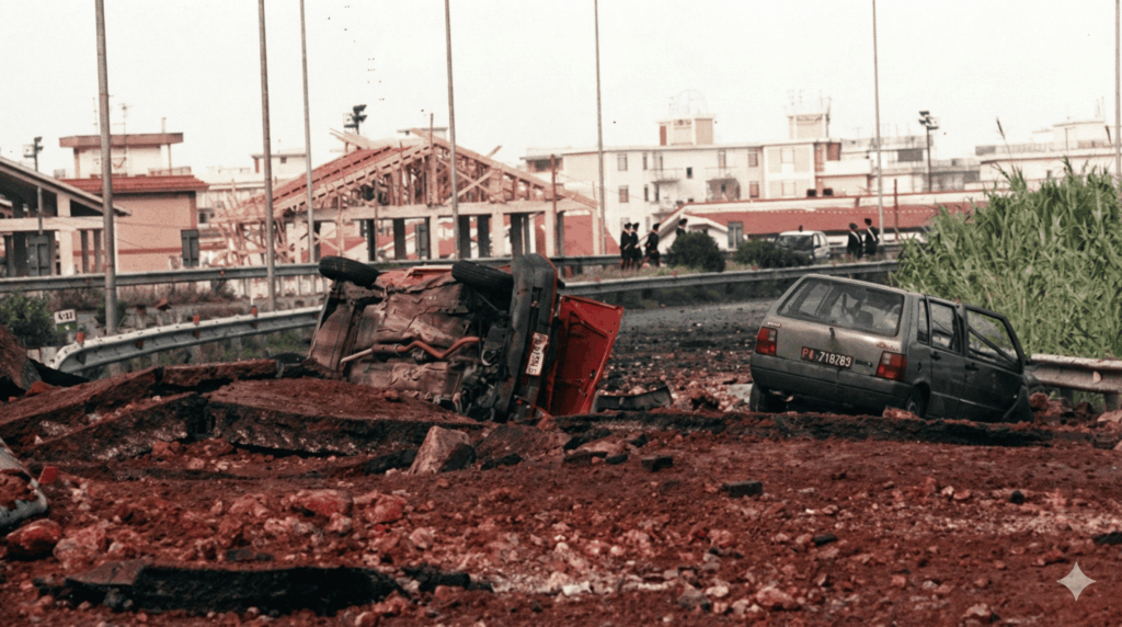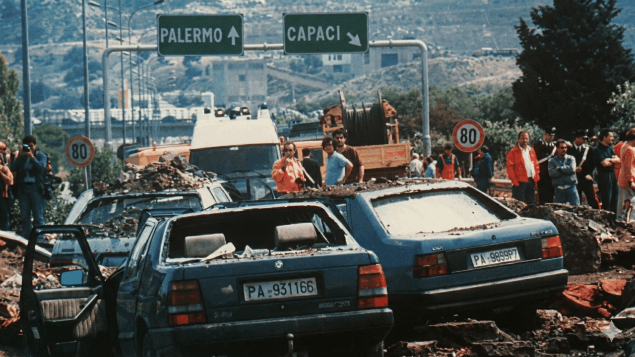 Primavera na Europa tempo ameno céu claro, no dia 23 de maio do ano de 1992 uma bomba com aproximadamente 500 Kg de TNT e Nitrato de amônia é detonada remotamente na Sicília uma ilha do mediterrâneo. Local escolhido pela máfia Siciliana foi a rodovia A29, perto do desvio de Capaci. Esse ato levou a morte o Juiz Giovanni Falcone sua esposa Francesca Morvilho e três agentes de sua escolta. Essa foi a resposta do clã Cosa Nostra ao trabalho de combate contra a máfia que era feito pelo Juiz Falcone e seus colegas. O ataque ficou conhecido na Italia e no mundo como o “Massacre de Capaci. Os principais jornais da Europa e do Brasil noticiaram o fato.